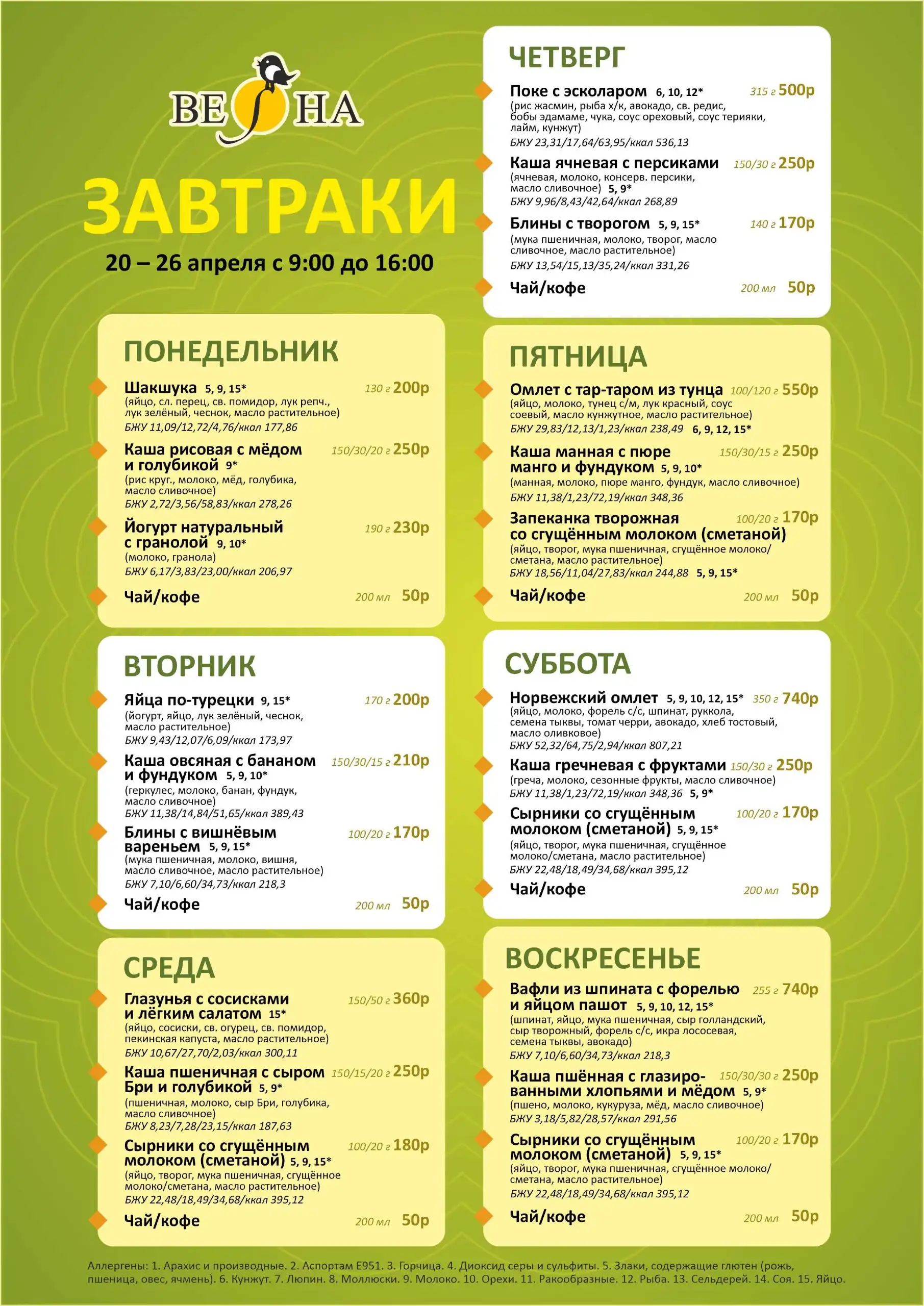 ежедневно 9:00 — 11:00