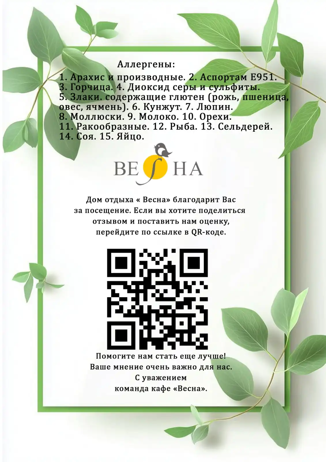 Мы всегда рады нашим гостям и делаем все, чтобы пребывание в доме отдыха «Весна» было максимально комфортным