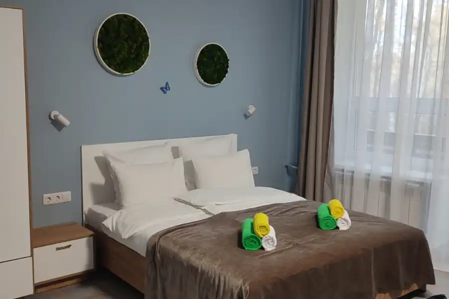 Однокомнатный номер, площадью 25 м2, прихожая, душевая, сан.узел, два балкона, с возможностью размещения до 4-х гостей.