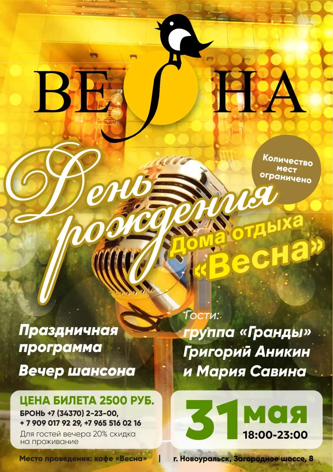 Не упустите шанс провести незабываемый вечер в дружной и веселой компании и получить максимум удовольствия!