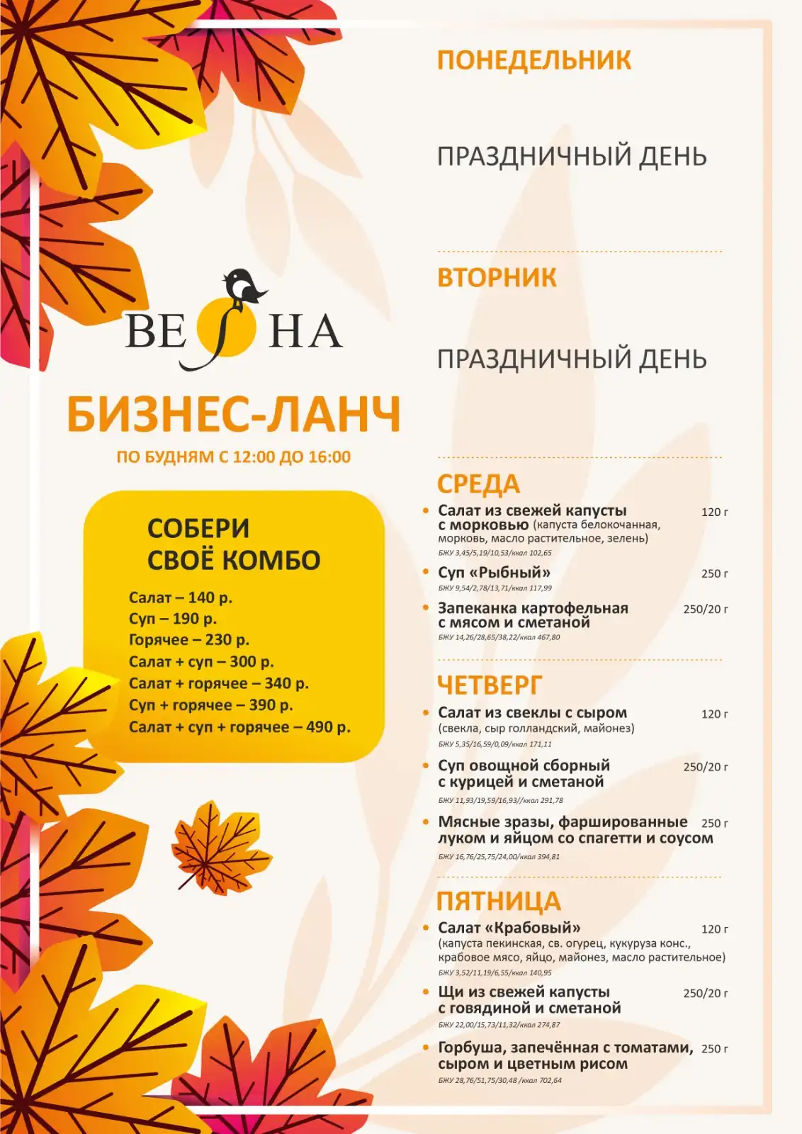 Дом отдыха «Весна» предлагает отведать разнообразные блюда в своем кафе. Здесь можно выбрать подходящее место для романтического ужина или для проведения деловых переговоров.