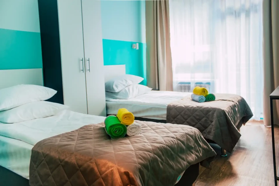 четыре односпальные кровати или двухспальные кровати (по запросу), шкаф, прикроватные тумбы;